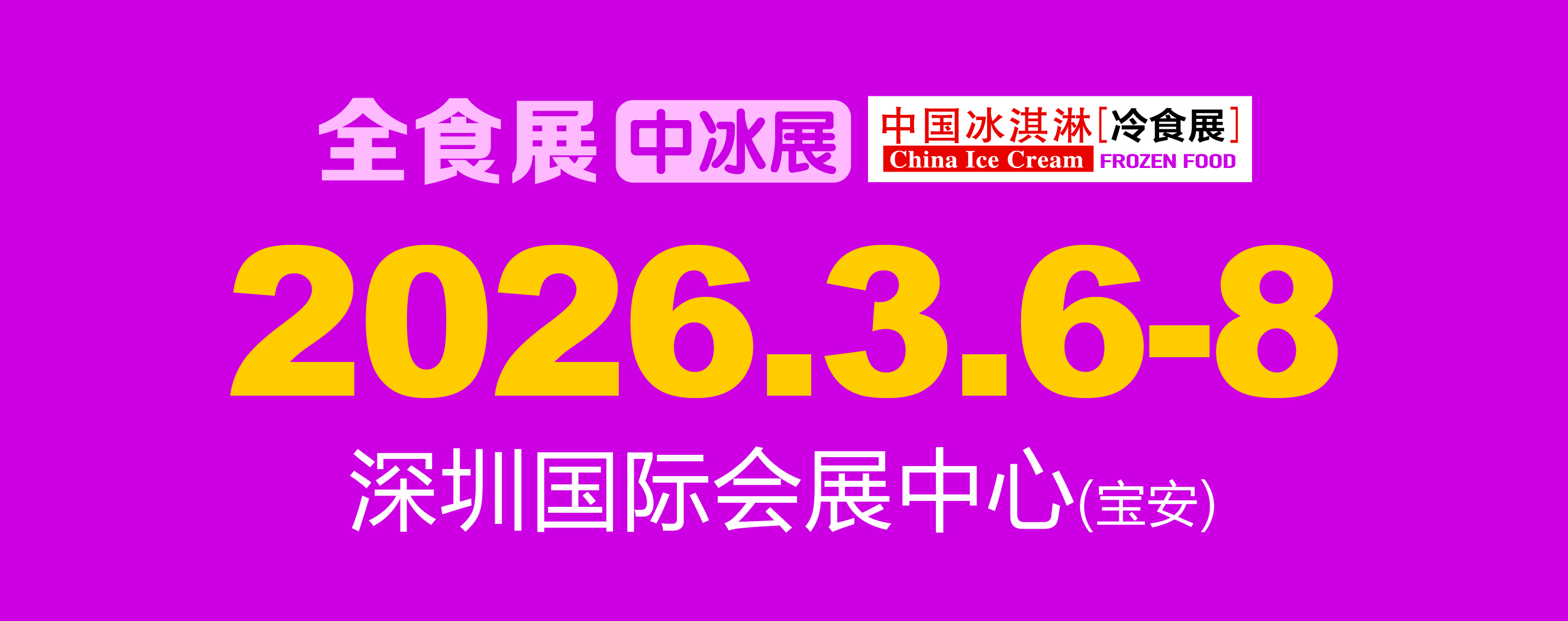 由中國(guó)副食流通協(xié)會(huì)支持,北京龍品錫展覽有限公司主辦,深圳龍品錫展覽有限公司承辦的第26屆全球高端食品展覽會(huì)、第21屆中國(guó)冰淇淋冷食展,定于2026年3月6-8日,在深圳國(guó)際會(huì)展中心(寶安)舉行。本屆展會(huì),規(guī)劃展出面積15萬(wàn)平米,預(yù)計(jì)參展企業(yè)2800余家,專(zhuān)業(yè)觀(guān)眾18萬(wàn)人次。
